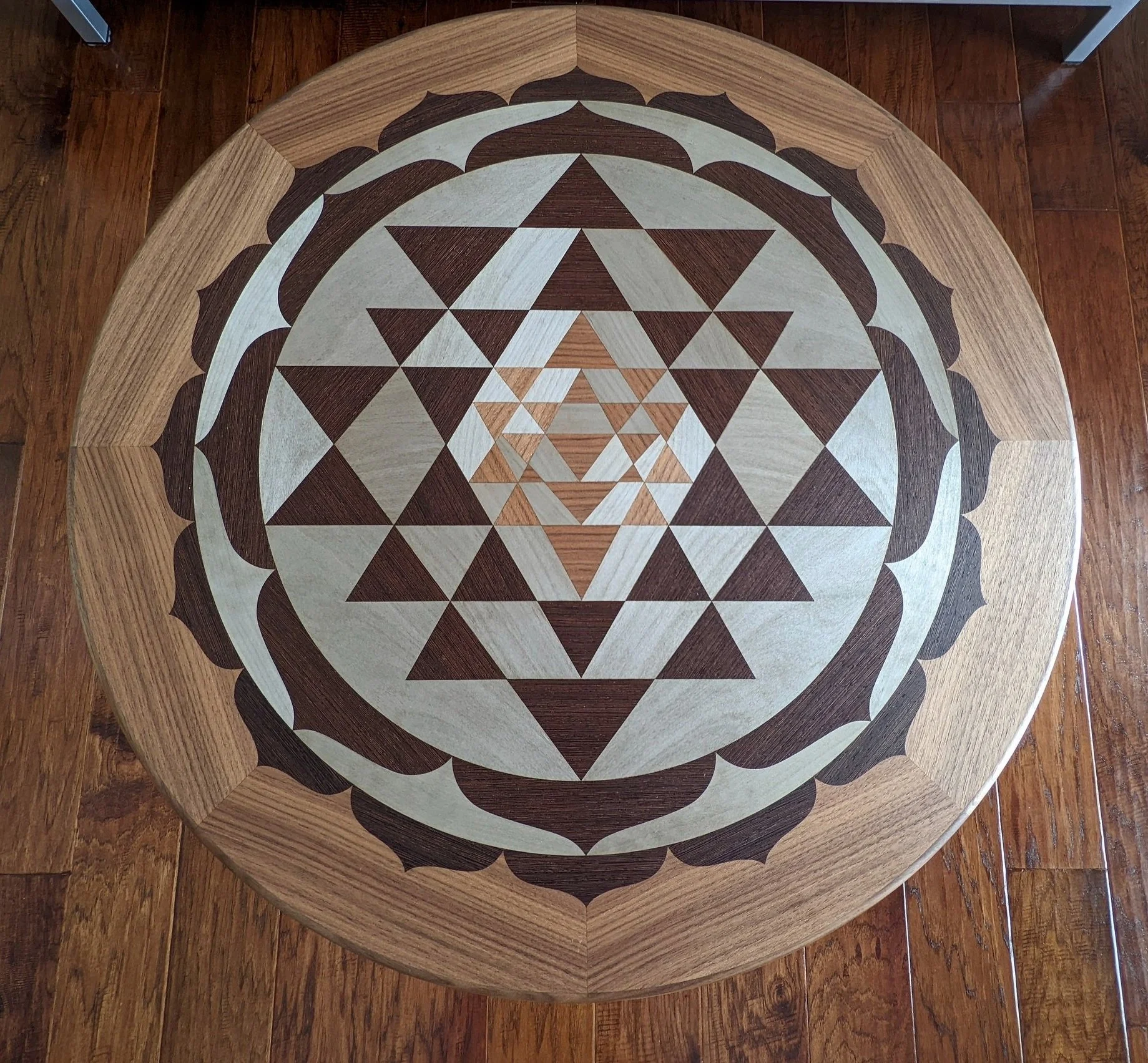 Sri Yantra represented here is considered to be the mother of all Yantras. This symbol can help you clear negativity in your life and help you fulfill your dreams.